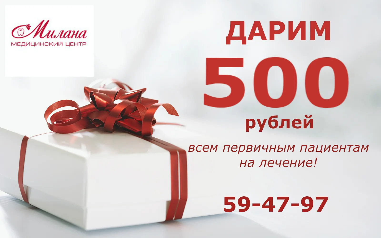 Дарим 500 рублей на лечение всем первичным пациентам!