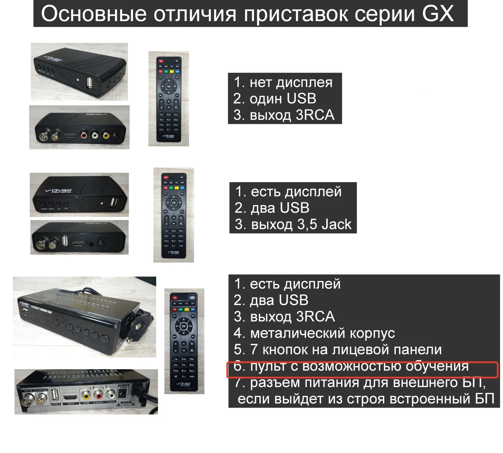 DVS-T2+C HOBBIT IRON GX: Приемник цифровой эфирный DVB-T/T2/C + UNIVERSAL RCU