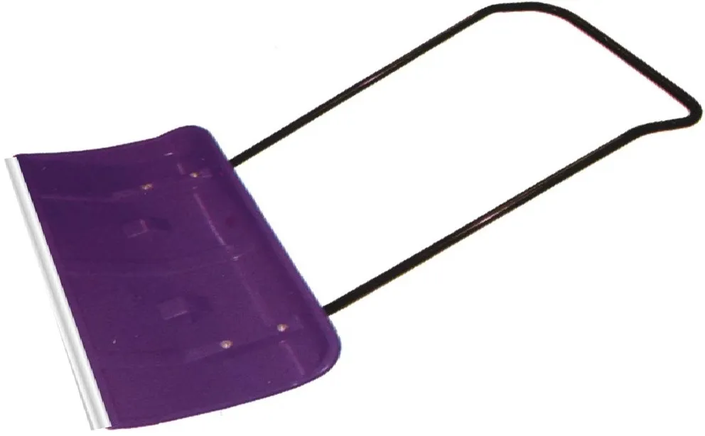 Снегоуборочный движок на колесиках большой ширины предназначен для уборки территорий очень больших по площади. П-образная ручка движка укреплена таким образом, что создает ребра жесткости для этого пластикового изделия.