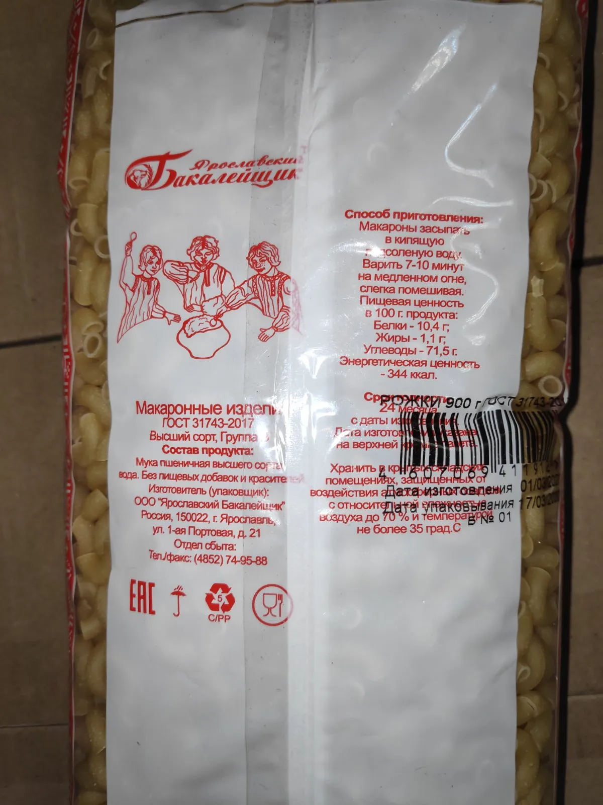 Продаются макаронные изделия (рожки, вермишель), группа Б "Ярославский бакалейщик" 0,9 кг. Производство 2020 г. В упаковке по 6 - 10 штук.
