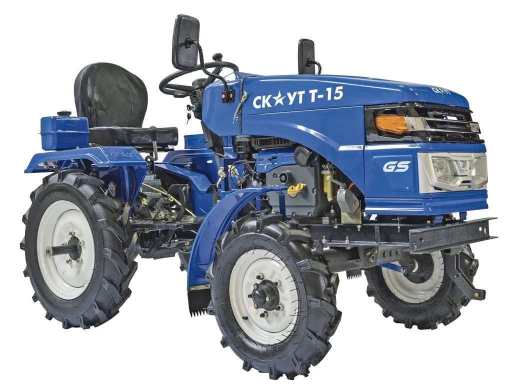 Минитрактор Скаут Т-15 открывает модельный ряд тракторов завода «Garden Scout Machinery co. Ltd» и пришел на смену модели Скаут Т-12. В новинку вложен многолетний опыт тракторостроения, удовлетворены все требования и пожелания конечного пользователя (фермеров и мелких коммунальных хозяйств). Инженеры не только устранили все недостатки предыдущей модели, но и расширили функционал для профессионального использования. Оснастили трактор всем необходимым чтобы выполнять любой тип работы, от вспашки до сбора урожая. Расширение модельного ряда навесного оборудование и точная адаптация к трактору, обеспечивают использование трактора для коммунальных нужд (сметание листвы, подметание тротуара, уборка снега). При всём этом, удалось сохранить низкую конкурентную стоимость и обрести лучшее качество на рынке минитракторов.
