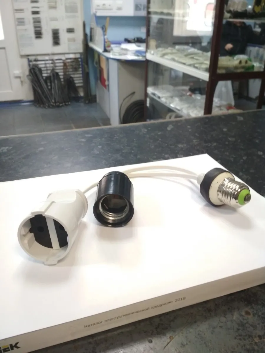 Переходник с патрона Е27 на розетку + патрон Е27.