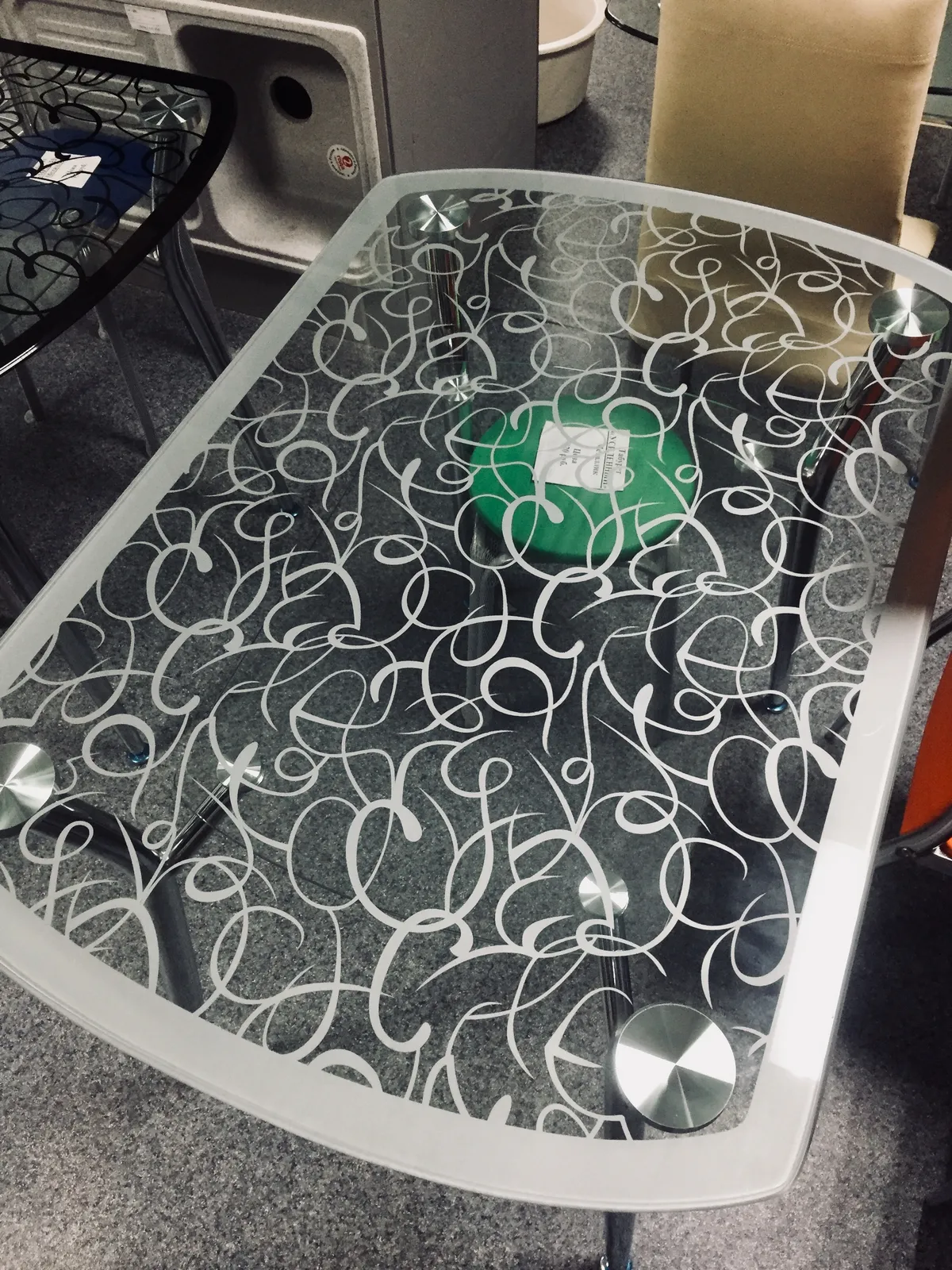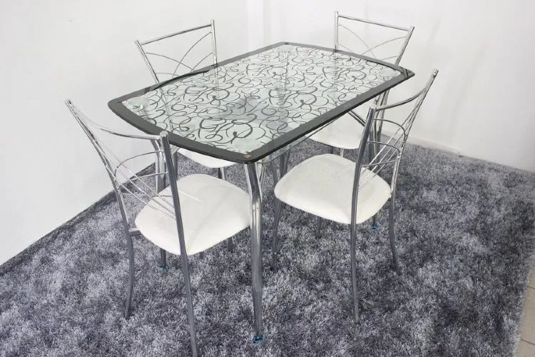 Материал: Столешница из закаленного стекла. Опоры металлические хромированные.