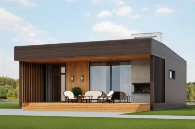 Основная идея заключается в создании компактного, экологичного, современного и функционального загородного жилища, в котором есть все необходимое для комфортного проживания и отдыха семьи из 2-3х человек. Дом спроектирован одноэтажным, с патио.