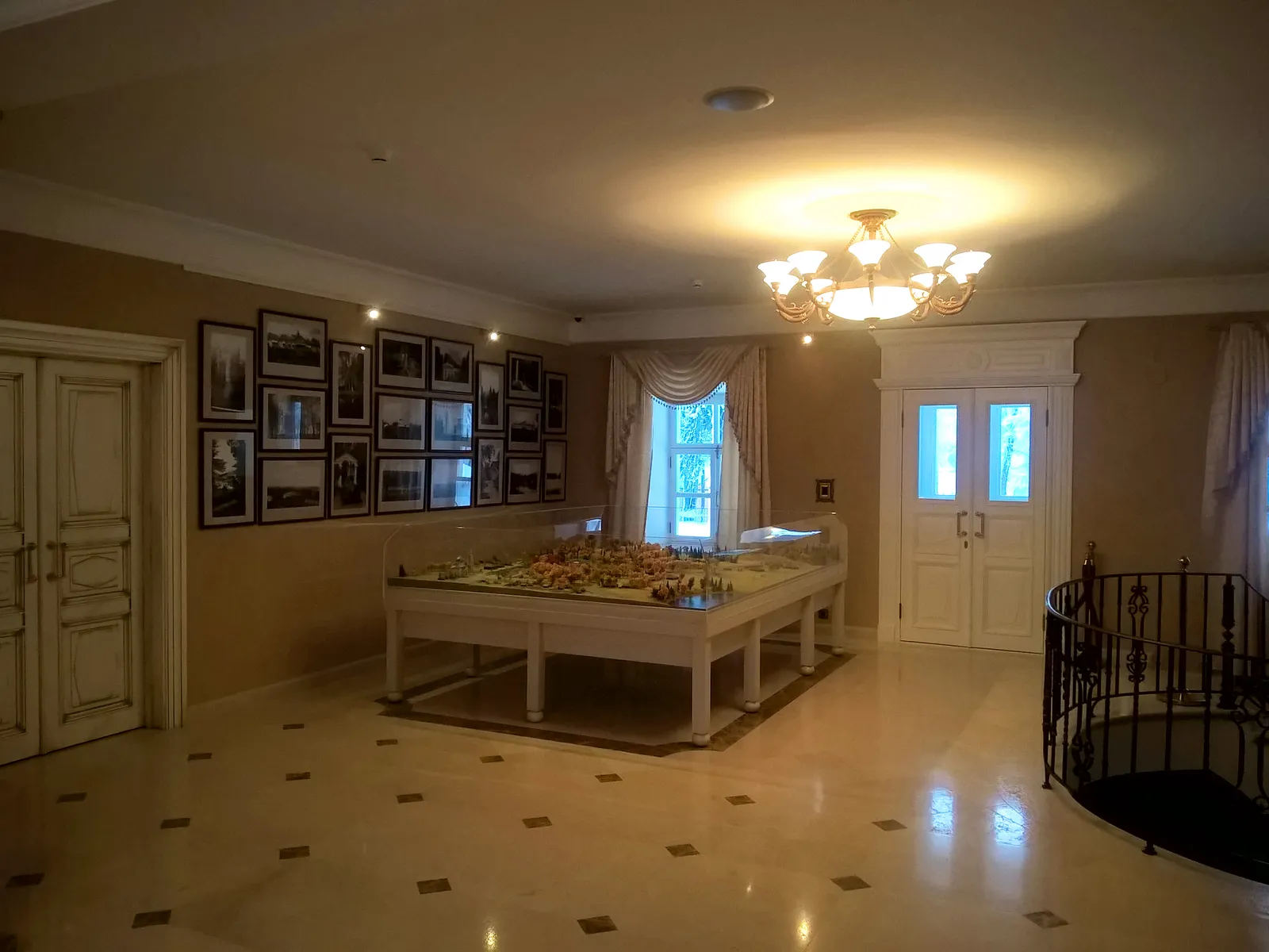 В холе главного дома расположен макет усадьбы в масштабе 1:200. Полностью воссоздан облик зданий и парков в миниатюре. У посетителей появляется возможность совершить виртуальное путешествие по всем уголкам усадьбы, рассмотреть территорию площадью 25 га во всех мельчайших подробностях.