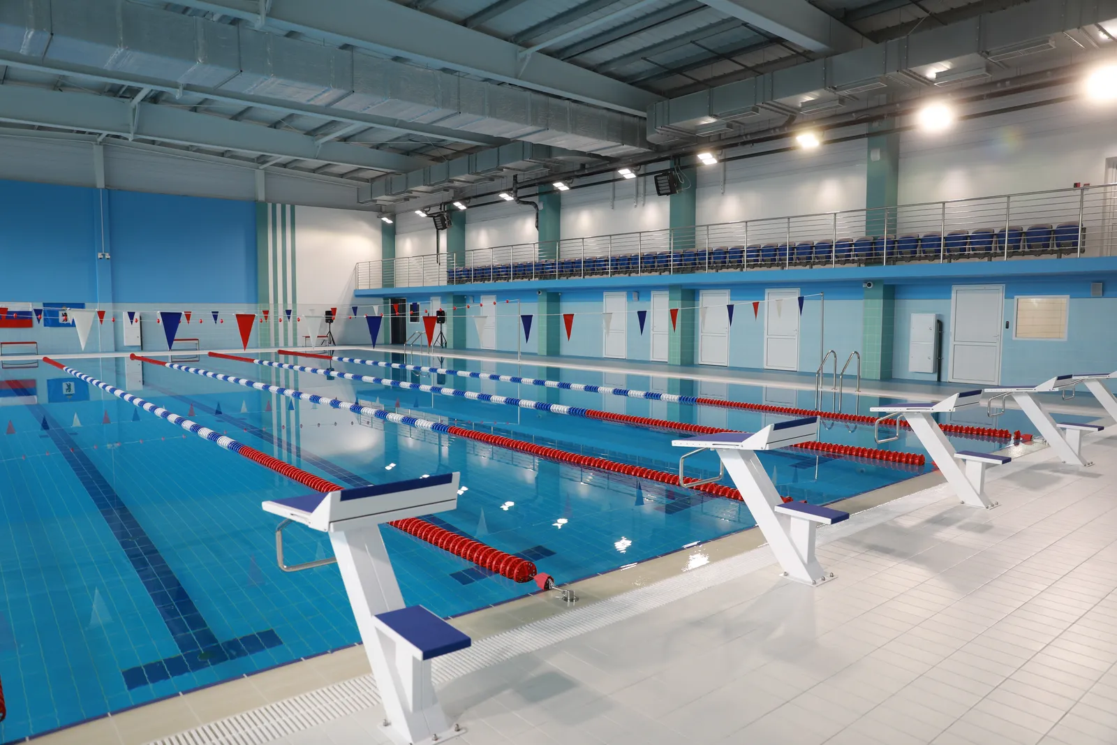 В тренировочном блоке находится спортзал с трибунами на 500 зрительских мест. В подготовительно-восстановительном корпусе размещены тренажерный зал, помещения для групповых командных занятий, бассейн размером 25 х 16 метров на шесть дорожек, детский бассейн размером 12,5 х 6 метров, детский клуб, зона спа. В помещениях установлена основная часть необходимого оборудования и мебели.