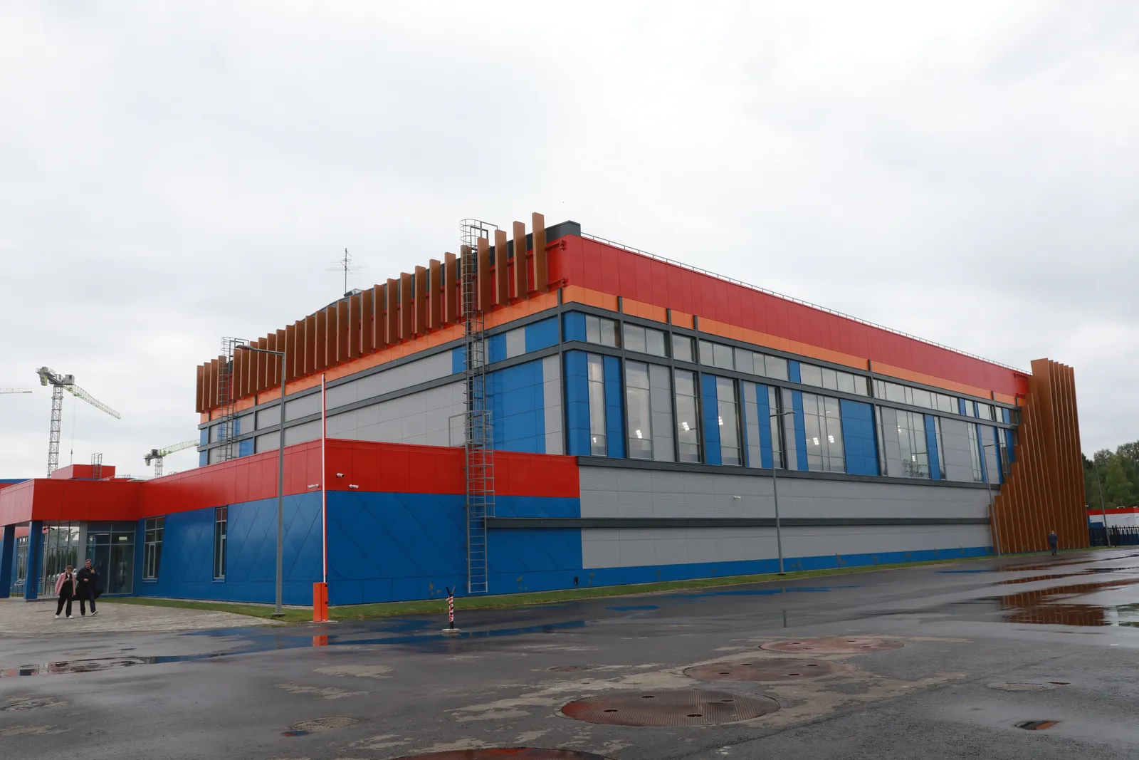 Здесь завершаются монолитные работы основного конструктива здания, продолжается монтаж большепролетных металлических ферм основного купола кровли и металлоконструкций парапетов, венткамер, лестниц. На финальной стадии запланирована каменная кладка наружных и внутренних стен, цементно-песчаная стяжка полов, штукатурка стен и колонн, активно ведутся инженерные работы и монтаж крупногабаритного оборудования.