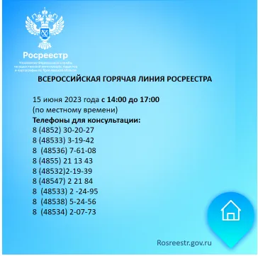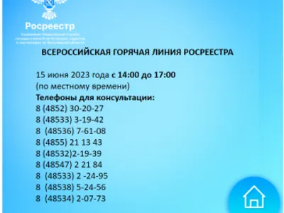 15 июня 2023 года с 14:00 до 17:00 (по местному времени) специалисты Управления Росреестра по Ярославской области проведут телефонную горячую линию и расскажут о нюансах предоставления услуг Росреестра в Электронном виде.