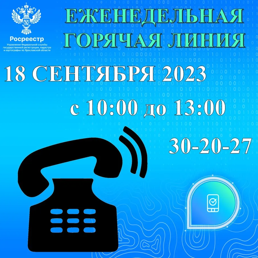 18 СЕНТЯБРЯ Управление Росреестра по Ярославской области проводит еженедельную "горячую линию" по вопросам государственного кадастрового учета и государственной регистрации прав