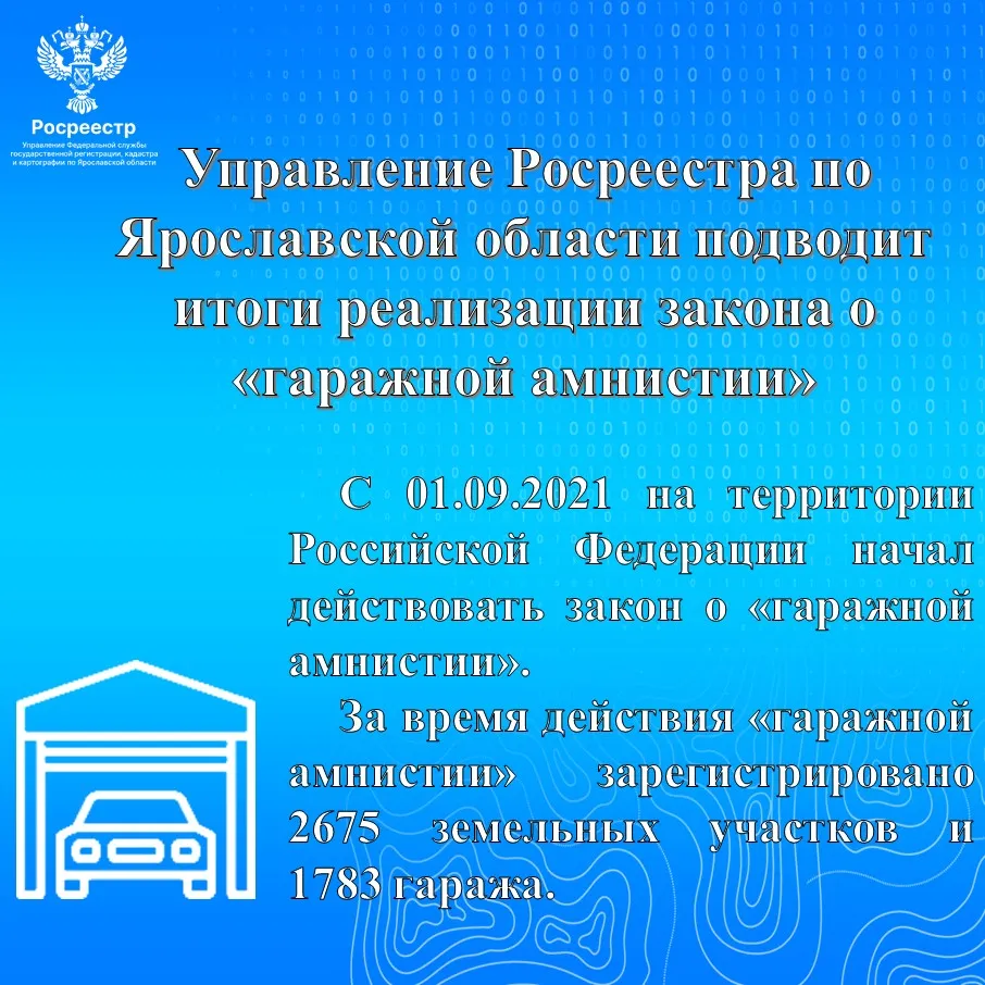 За время действия «гаражной амнистии» на территории Ярославской области специалистами Ярославского Росреестра зарегистрировано 2675 земельных участков и 1783 гаража.
