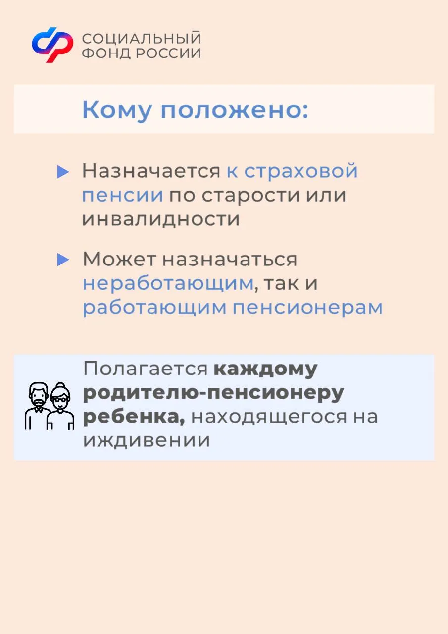 У родителей-пенсионеров, которые получают страховую пенсию по старости или по инвалидности и имеют на обеспечении несовершеннолетних детей до 18 лет или детей-студентов, обучающихся на очном отделении учебного заведения, есть право на получение повышенного размера фиксированной выплаты к страховой пенсии. В Ярославской области такую надбавку получают более 10 300 граждан.