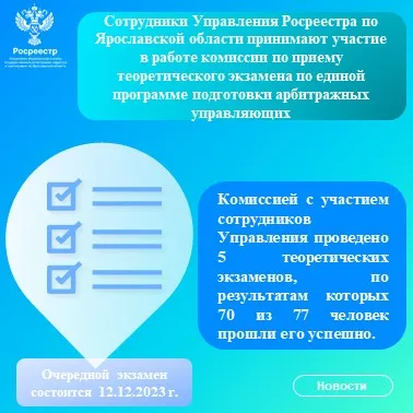 Сотрудники Управления Росреестра по Ярославской области принимают участие в работе комиссии по приему теоретического экзамена по единой программе подготовки арбитражных управляющих. Состав комиссии утверждается Росреестром.