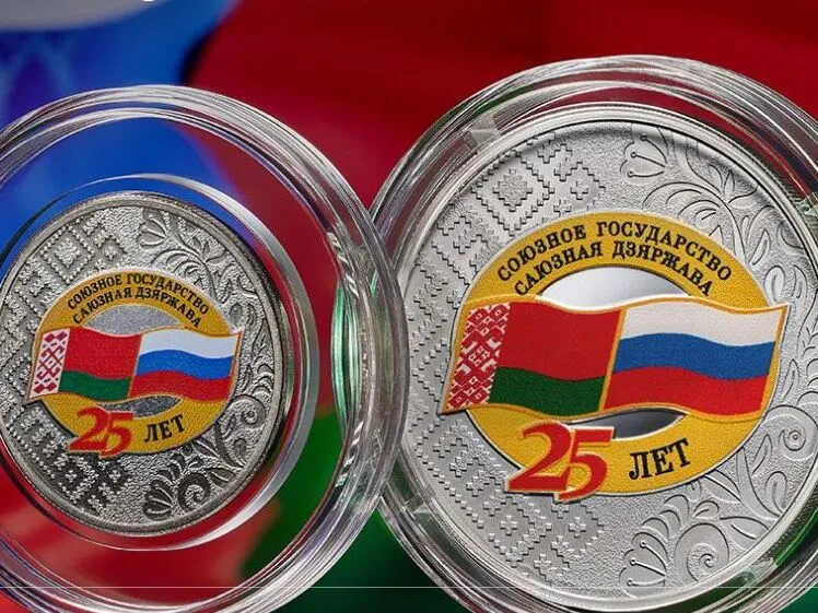 К 25-летию подписания Договора между Российской Федерацией и Республикой Беларусь о создании Союзного государства Банк России выпустил в обращение памятные монеты номиналом 3 и 25 рублей.
