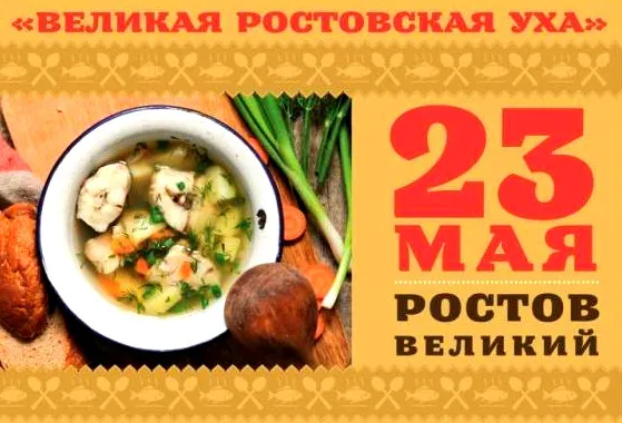 Не знаете, чем заняться в субботу? В Ростове завтра, 23 мая пройдёт фестиваль «Великая Ростовская уха». Состоится он на Колхозной площади. Мы всегда считались рыбным краем и поставляли много рыбы к царскому столу. По всей ярославской области уху любят и по сей день. У нас есть даже фестиваль, посвящённый этому вкусному блюду, который проводится в Ростове Великом.