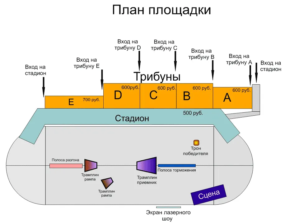 Все мероприятие будет сопровождаться наземными и воздушными пиротехническими эффектами, магниевыми взрывами и огненными вспышками факелов. Каждый зритель сможет не только созерцать захватывающие дух прыжки, но и участвовать в выявлении лучшего спортсмена.