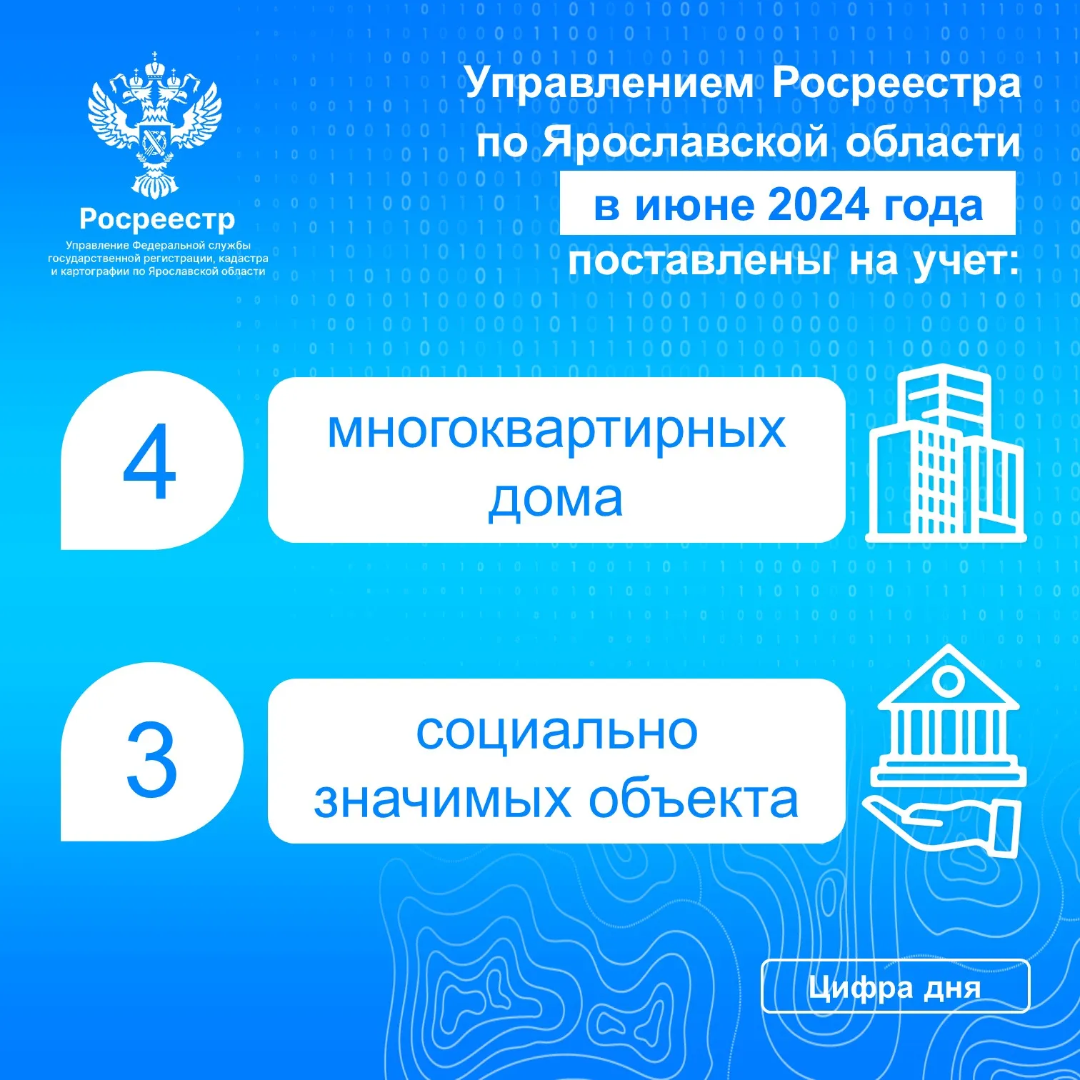 Управление Росреестра по Ярославской области представляет статистику поставленных на государственный кадастровый учет (ГКУ) объектов за июнь 2024 года.