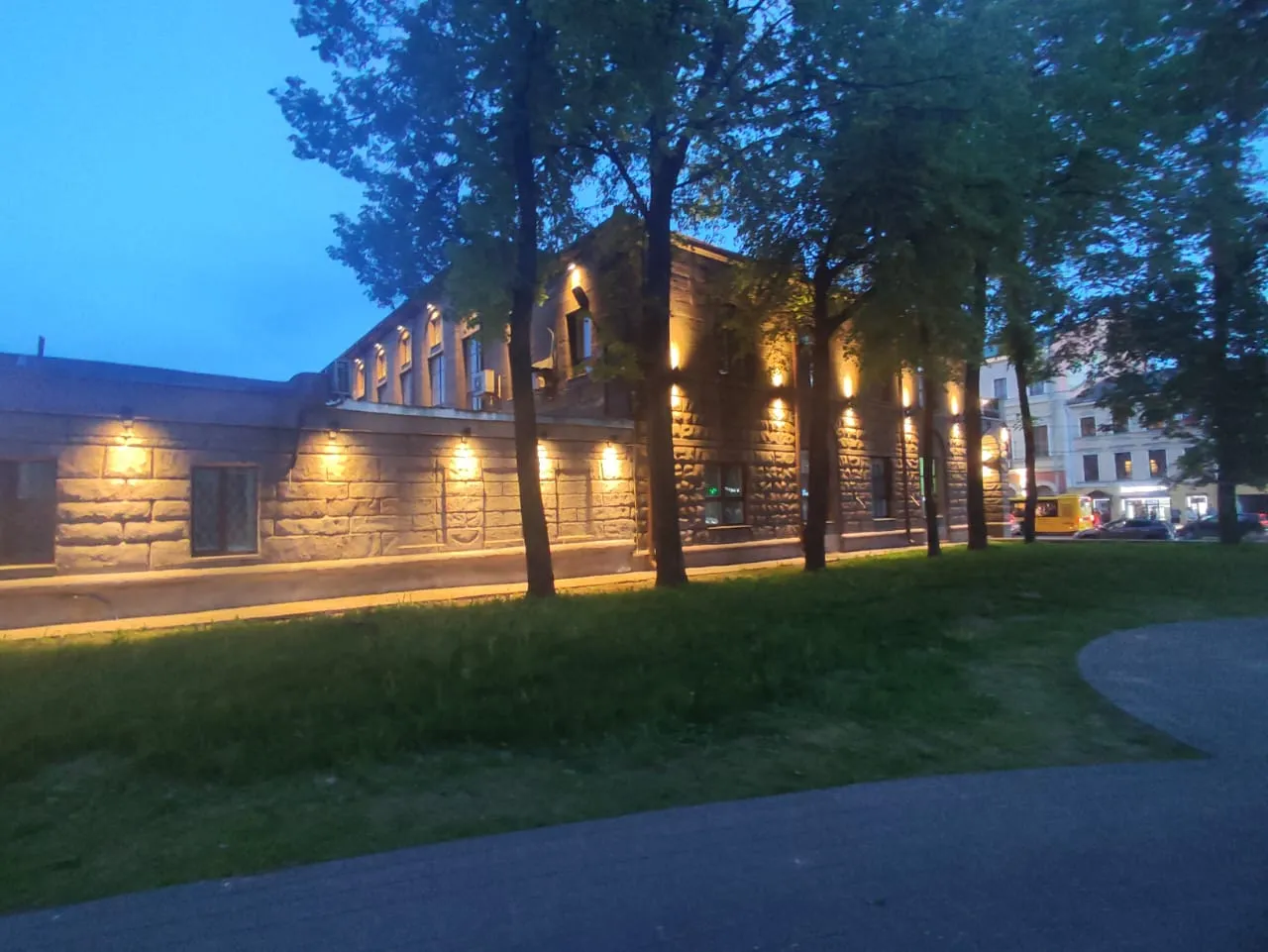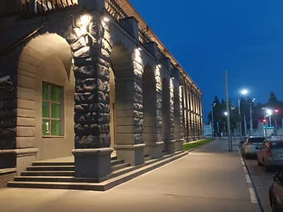 На фасаде здания, расположенного в историческом центре Ярославля по адресу ул. Комсомольская, дом 7, установлено более 140 прожекторов. Устройства размещены таким образом, чтобы одновременно выделить светом элементы фасада здания, но не нарушить целостность конструкции.