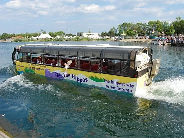 Любопытный факт: в канадском Торонто появился новый вид городского общественного транспорта (на иллюстрации) – автобус-амфибия Hippo, который везёт пассажиров по земле и вплавь.