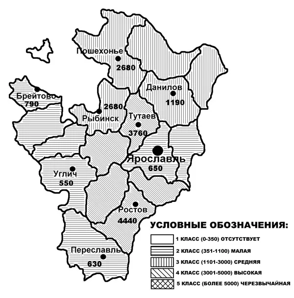 Карта ожидаемого распределения показателя горимости леса по Ярославской области на 11 мая 2011 года
