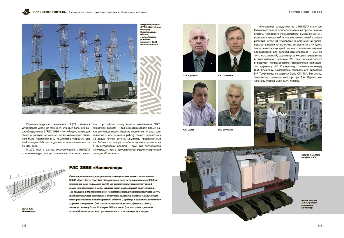На РЗП создаются сложнейшие радиоэлектронные системы, входящие в состав зенитно-радиолокационных систем, космических кораблей и комплексов космического базирования, самолётов гражданской и военной авиации, загоризонтных радиолокационных станций. Весь пройденный предприятием путь – от предпосылок к его созданию до реалий наших дней – в книге представлен подборкой уникальных фотоматериалов, документальных свидетельств, выверенных исторических фактов и воспоминаний заводчан.