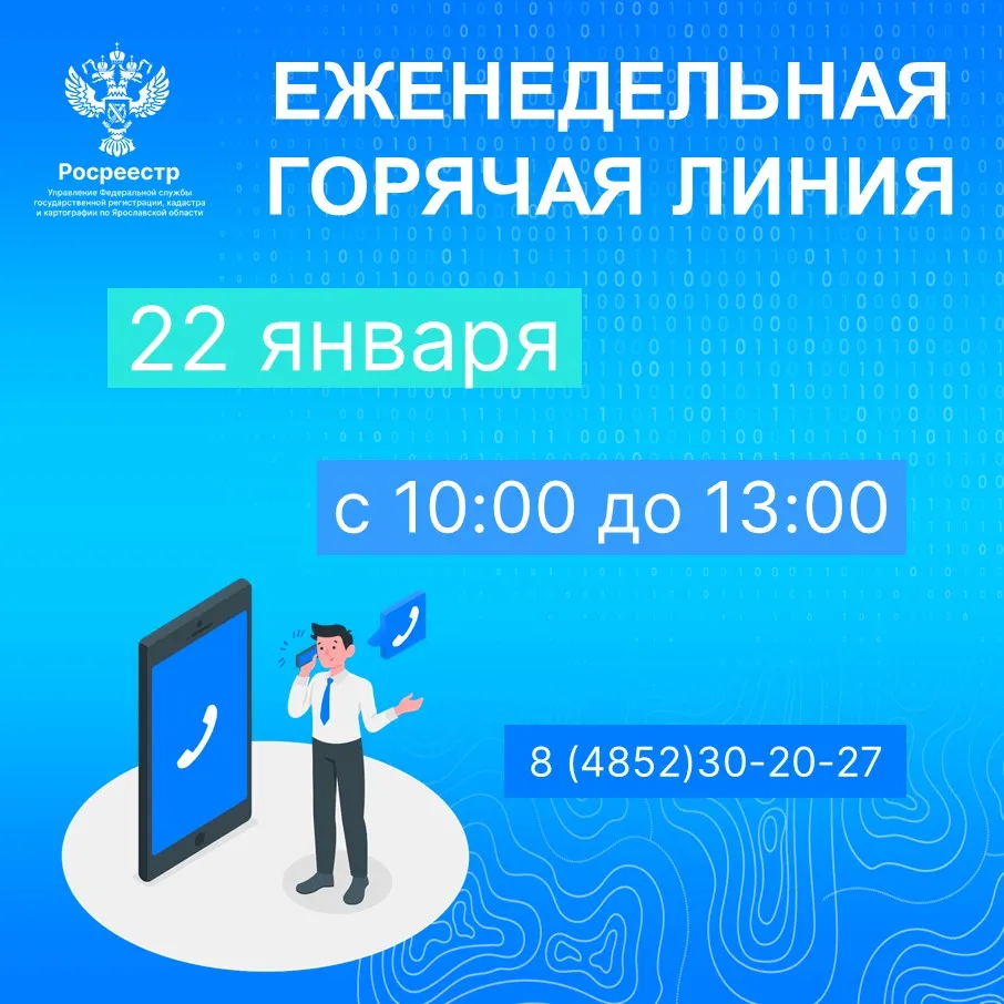 22 января 2024 года состоится еженедельная телефонная «Горячая линия» по вопросам государственного кадастрового учета и государственной регистрации прав.
