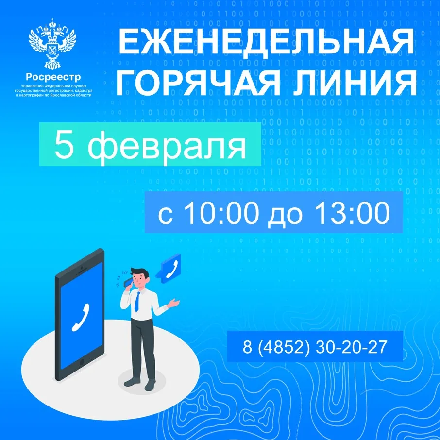 5 февраля 2024 года состоится еженедельная телефонная горячая линия по вопросам государственного кадастрового учета и государственной регистрации прав.