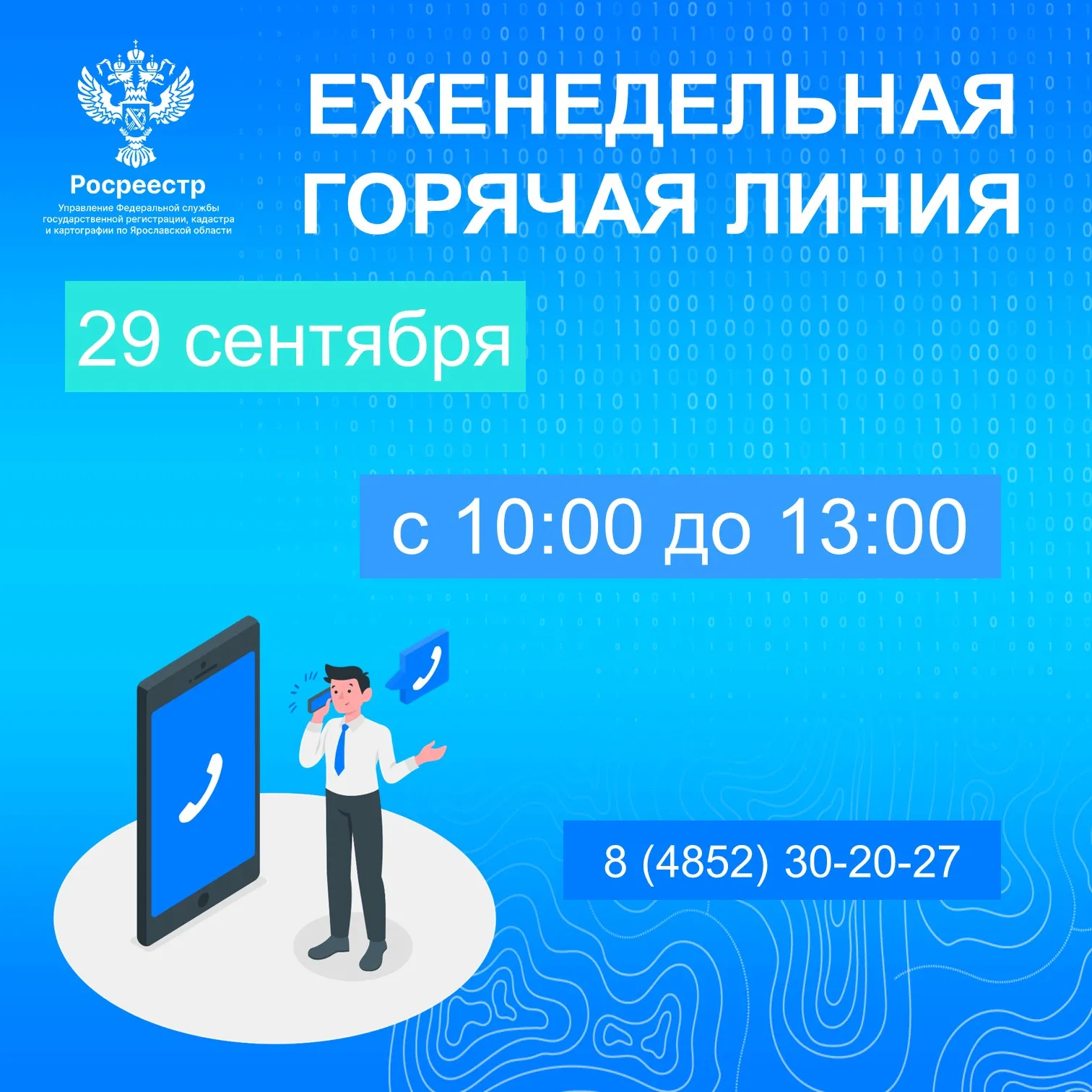 29 сентября 2025 года состоится еженедельная телефонная горячая линия по вопросам государственного кадастрового учета и государственной регистрации прав.