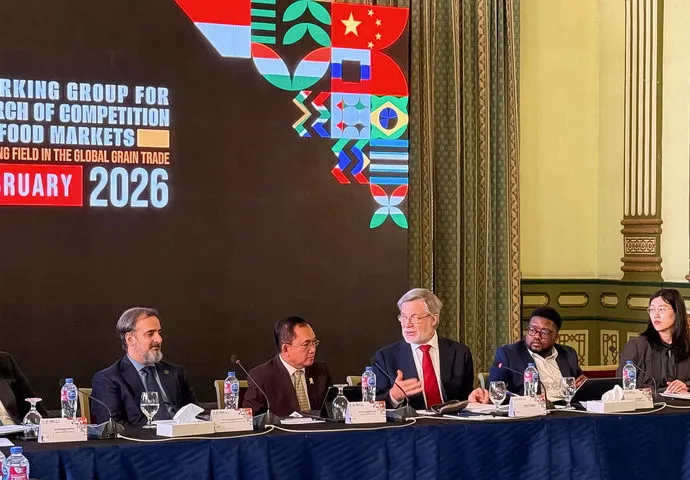 Отдельное внимание было уделено вопросам тактики проведения совместного исследования вопросов конкуренции в сфере глобальной торговли зерном. Проведение исследования пройдет по итогам Доклада по вопросам антимонопольного регулирования продовольственных цепочек создания стоимости, подготовленного в 2025 году этой Рабочей группой при содействии Центра БРИКС.