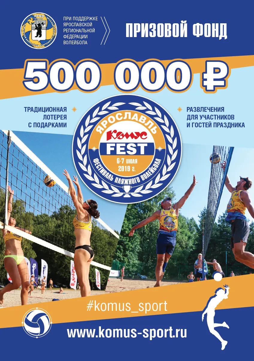 Насыщенная программа соревнований, солнце, пляж, положительные эмоции и отличное настроение ждут вас на фестивале пляжного волейбола «Ярославль Комус Fest»!