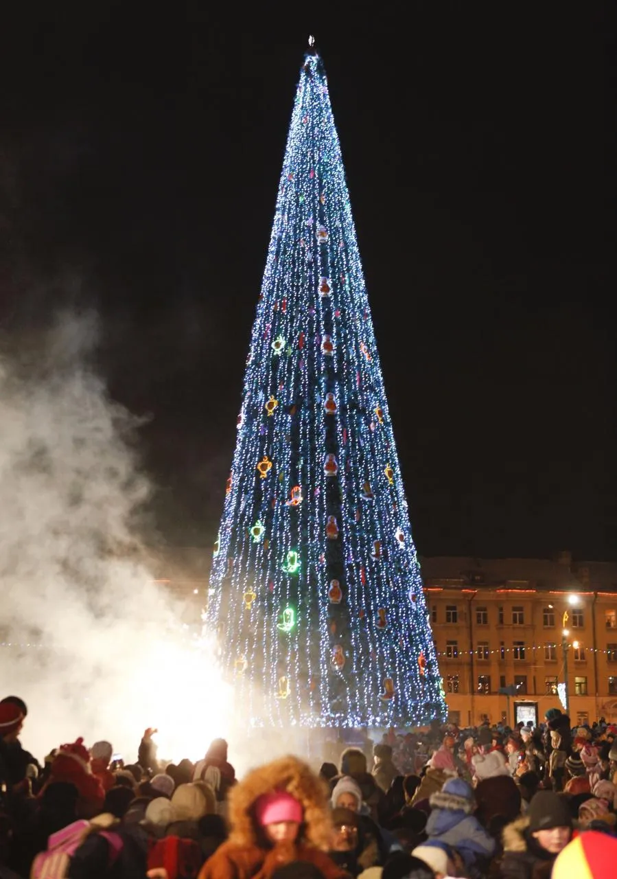 Не менее 12 тысяч человек ожидали главного новогоднего героя и на площади Дерунова. Никогда еще столько горожан сразу здесь не собиралось. Дед Мороз поздравил всех с наступающим праздником: « Дорогие мои друзья, рыбинцы! От мала до велика поздравляю вас с Новым годом. Счастья, здоровья, мира. И пусть все ваши желания исполнятся, мечты сбудутся».