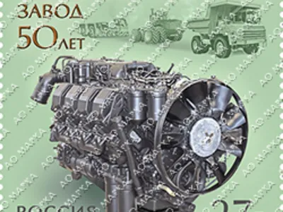 На марке изображен двигатель для тракторов Кировец на фоне самосвала БелАЗ, трактор Кировец и аэродромный тягач БелАЗ. Дополнительно к выпуску почтовой марки будут изданы ограниченным тиражом конверты первого дня и изготовлен штемпель первого дня для Москвы и города Тутаева Ярославской области.