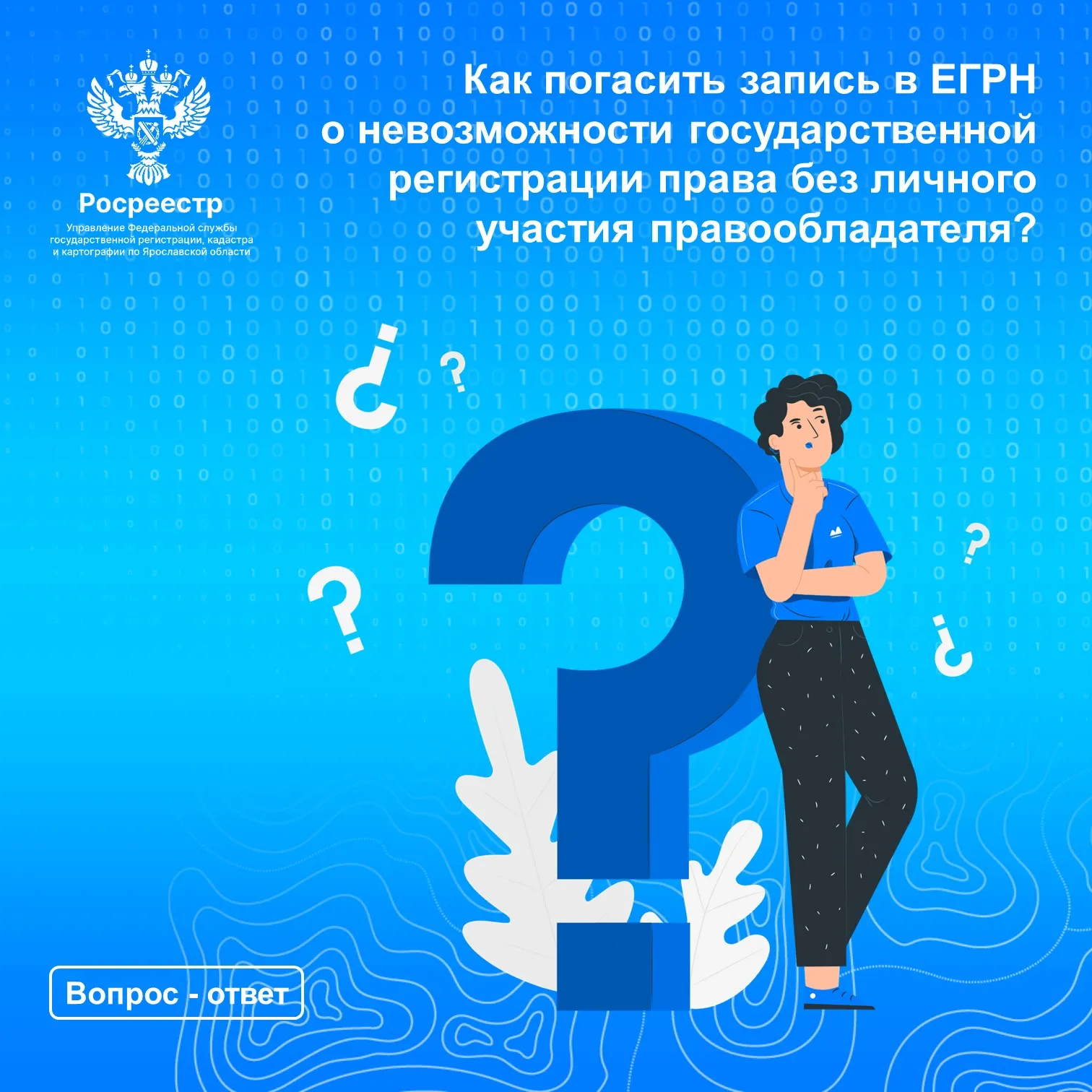 Ответ: Внесенная в ЕГРН запись о невозможности государственной регистрации перехода, прекращения, ограничения права и обременения такого объекта недвижимости без личного участия правообладателя (его законного представителя) погашается на основании: