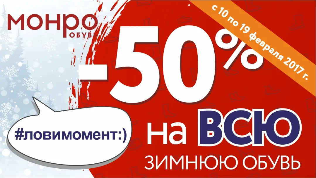 *Количество товаров, участвующих в акции ограничено! Зайди на сайт – присмотри себе новую пару на https://www.monro.biz/news/lovimoment_-50 !