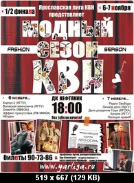 Мода не стоит на месте, как и сезон Ярославской лиги КВН. 6 и 7 ноября в 18:00 в ДК «Нефтяник» пройдут полуфинальные игры. Именно в эти дни десяти ярославским командам КВН будет совершенно безразлично, что диктует мода, потому что тема игры — «Фристайл». Остановим время моды, забудем про гламурные веяния и ультрамодный глянец. Будем постигать свободный, непринужденный стиль вместе с ними: