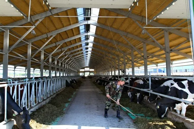 Двухэтажное здание площадью 12 000 кв.м. вмещает в себя три комплекса для размещения голов крупного рогатого скота.