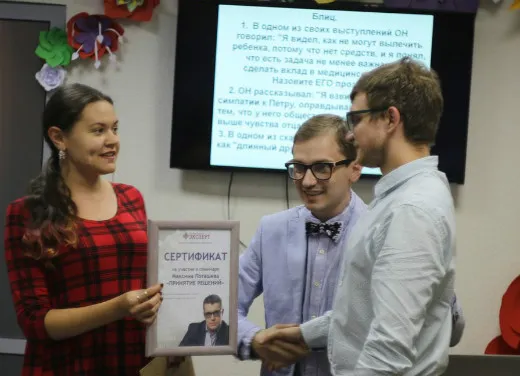 Капитан команды-победителя последней викторины – Василий Медведев - получил сертификат на посещение увлекательного семинара одного из самых известных «знатоков» нашей страны – Максима Поташёва. Остальные члены победившей команды также получили подарки. Таким образом местное интеллектуальное сообщество игроков-любителей сможет позаимствовать опыт и знания старшего поколения.