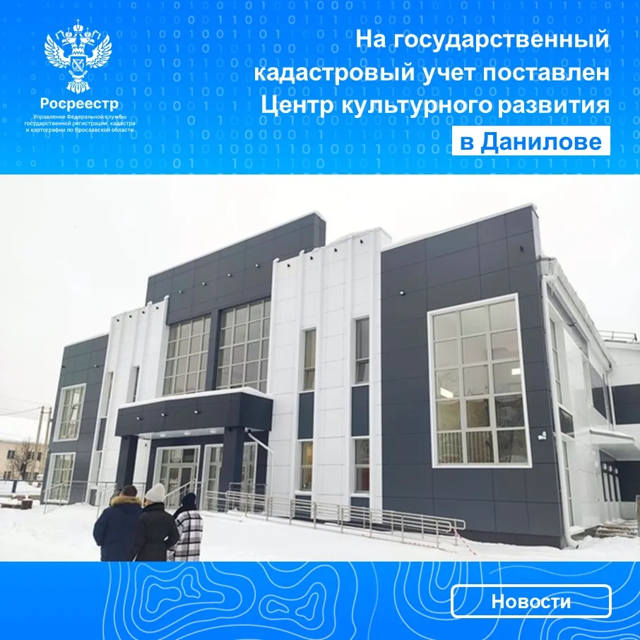 Управлением Росреестра по Ярославской области на государственный кадастровый учет за 1 день поставлено здание Центра культурного развития, расположенное на улице Володарского, 68 в городе Данилов.