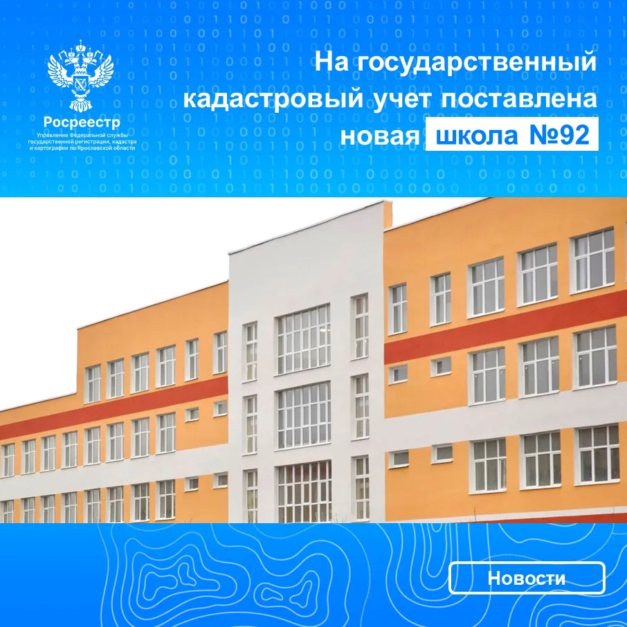 Управлением Росреестра по Ярославской области на государственный кадастровый учет поставлена общеобразовательная школа №92, расположенная в Дзержинском районе города Ярославля на улице Пашуковской.