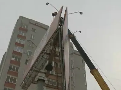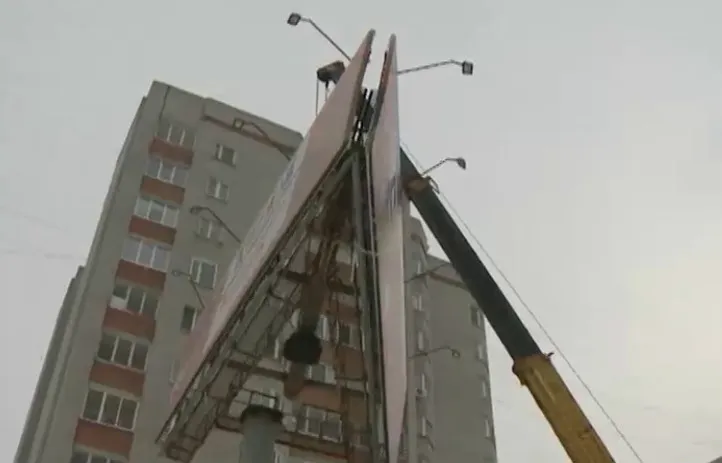 Этот щит, называемый также «утюг» - конструкция внушительных размеров. Причём размещён он был вот уже два года на Московском проспекте прямо под окнами жилого дома, и, несмотря на просьбы жильцов дома, его не убирали. Вчера ненавистный рекламный носитель всё же демонтировали на радость местным жителям. Эти работы проводятся в связи с намерением властей добиться законного и легального размещения наружной рекламы в Ярославле.