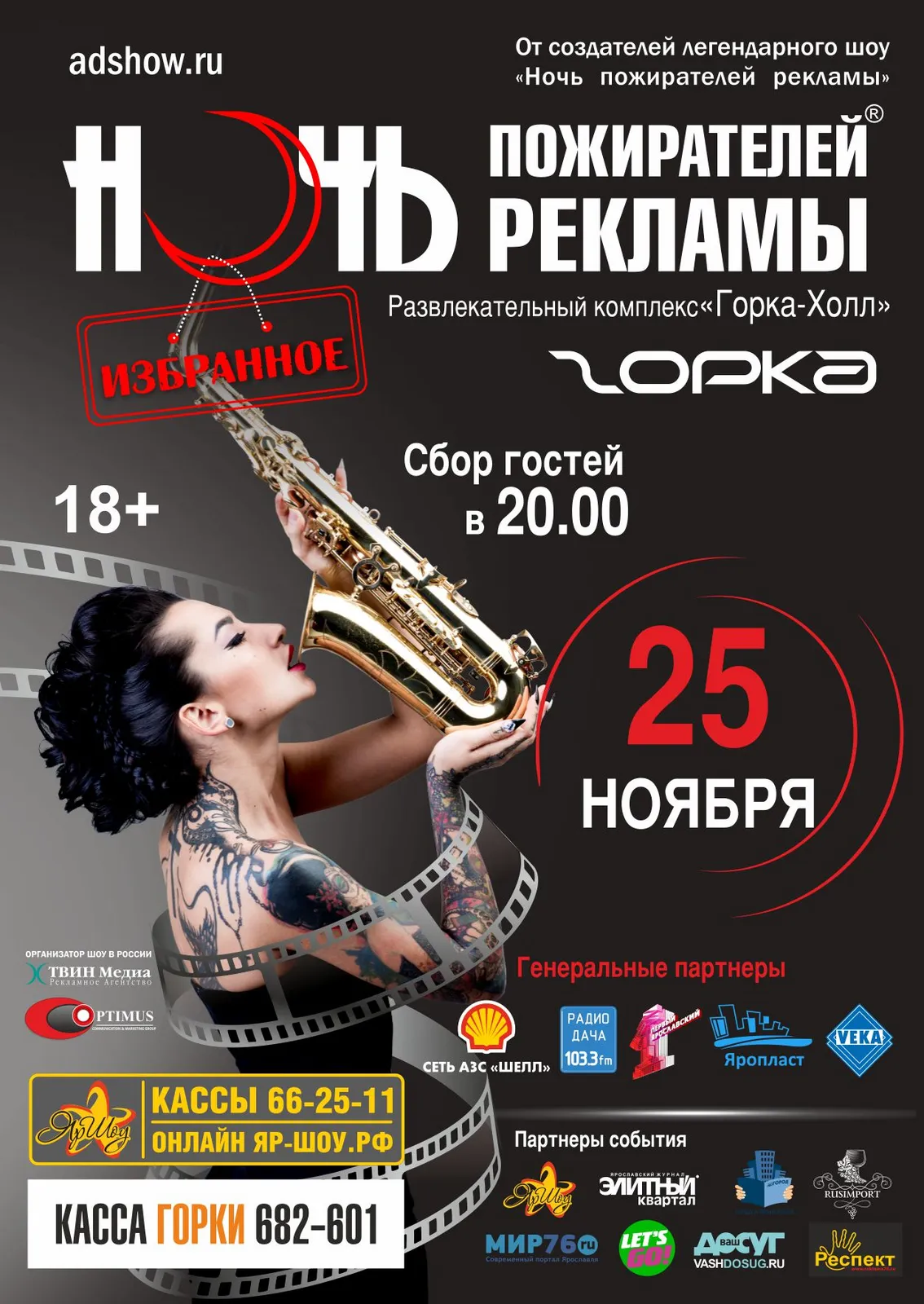Друзья, 25 ноября 2017г. в клубе «Горка» состоится масштабное мероприятие «Ночь пожирателей рекламы. ИЗБРАННОЕ».