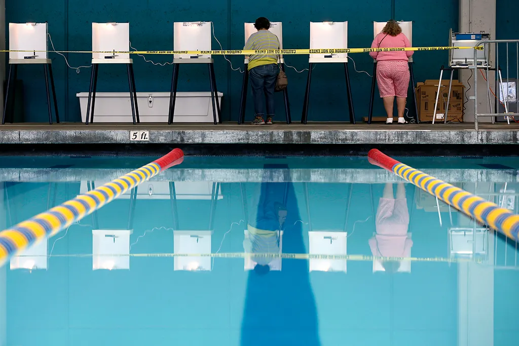 Любопытный факт: каких только избирательных участков не бывает на свете! Например, в Лос-Анджелесе один из избирательных участков находится... прямо в помещении общественного бассейна! (см. фото)