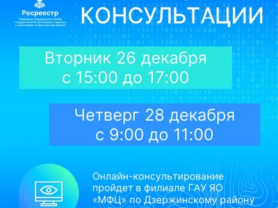 Онлайн-консультации Ярославского Росреестра в Дзержинском МФЦ 26 и 28 декабря