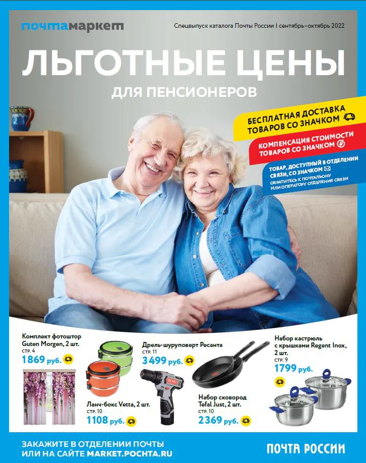 В каталоге «Льготные цены для пенсионеров» представлен домашний текстиль, посуда, бытовая техника, электроника, инструменты для строительства и ремонта, а также многие другие товары, популярные у клиентов «ПочтаМаркет». А выпуск «Товары для здоровья» собрал более 40 наименований, включая средства для реабилитации, ухода и гигиены. Его печатную версию можно будет найти в 1 195 сельских отделениях в 77 регионах, которые Почта в этом году модернизировала по поручению Президента России Владимира Путина.