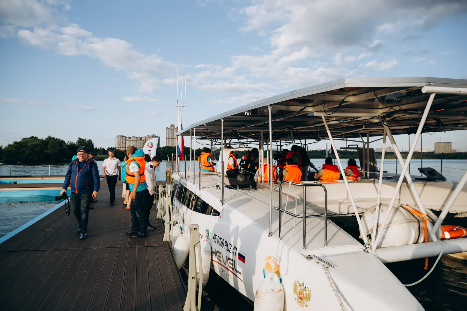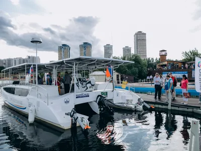 Первый катамаран на российских солнечных элементах построен в Санкт-Петербурге АНО "Национальный центр инженерных конкурсов и соревнований" специально для экспедиции "Эковолна", которая проходит в рамках проекта «Инженерные конкурсы и соревнования» дорожной карты «Маринет» Национальной технологической инициативы (НТИ).