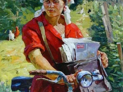 Картина «Сельский почтальон» - работа Фёдора Васильевича Шапаева, написанная в 1960 году. Жизнь, труд и быт современников были основной темой произведений художника. Его герои – простые люди важных профессий, в том числе, почтальоны, конечно же. Именно в этих героях, по словам художника, чувствуется внутренняя свобода, широкий взгляд на жизнь и большой оптимизм. В 1980 году Фёдору Шапаеву присвоено звание заслуженного художника РСФСР.