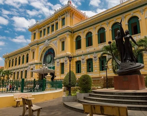 Вьетнамское почтовое отделение поражает своим цветовым сочетанием. От зданий почты других стран его отличает дизайн, вдохновленный готическим, ренессансным и французским колониальным стилем. Центральный почтамт имеет яркий внешний вид с белой отделкой, дополненной изогнутыми окнами, обрамленными зелеными ставнями. Внутри вы найдете петляющие арки, мраморные полы и большой портрет Хо Ши Мина.