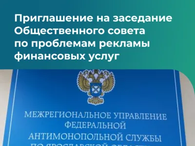 Ярославское межрегиональное УФАС России сообщает о проведении открытого заседания Общественного совета на тему «Проблема восприятия теле- и радио-рекламы финансовых услуг». Мероприятие состоится 30 октября 2025 года в 14:00 в формате видеоконференции.