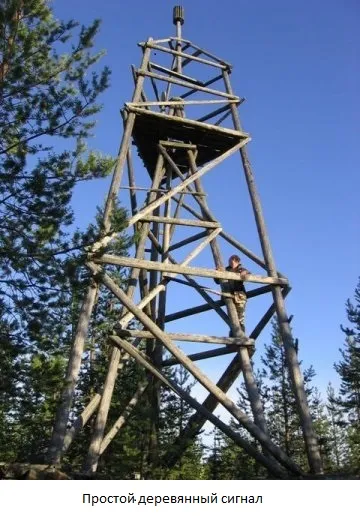 У сложного сигнала внутренняя пирамида укрепляется на тех же столбах, что и пол для наблюдателя. Простые сигналы имеют высоты от 6 м до 15 м, сложные — от 16 м до 55 м. В лесных районах сигналы сооружают из дерева, в безлесных — используют металлические знаки (постоянные или переносные).