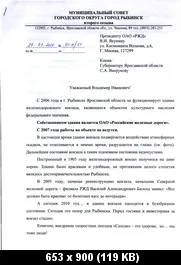 Депутаты направили письмо на имя Президента ОАО «РЖД» В.И. Якунина с приложением фотографий, на которых запечатлена разруха как внутри, так и снаружи здания. Об этом сообщает Муниципальный Совет городского округа город Рыбинск.