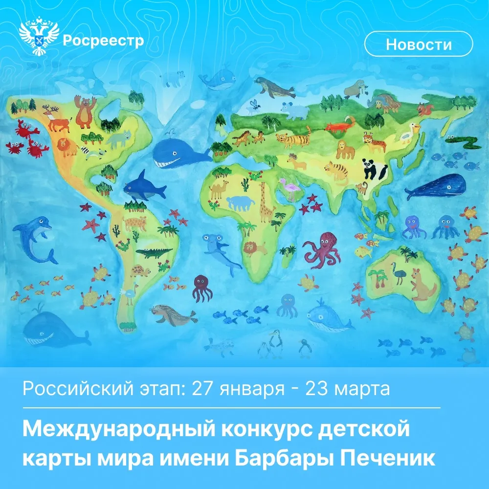 Росреестр приглашает детей в возрасте до 15 лет принять участие в российском этапе Международного конкурса детской карты мира имени Барбары Печеник.